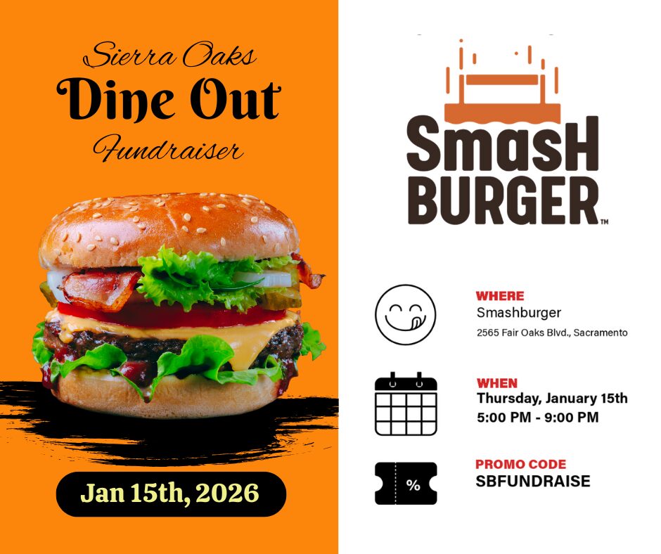 Join us for a Dine-Out-Night at delicious Smashburger that supports our Sierra Oaks School. If ordering online, please use the code: SBFUNDRAISE.